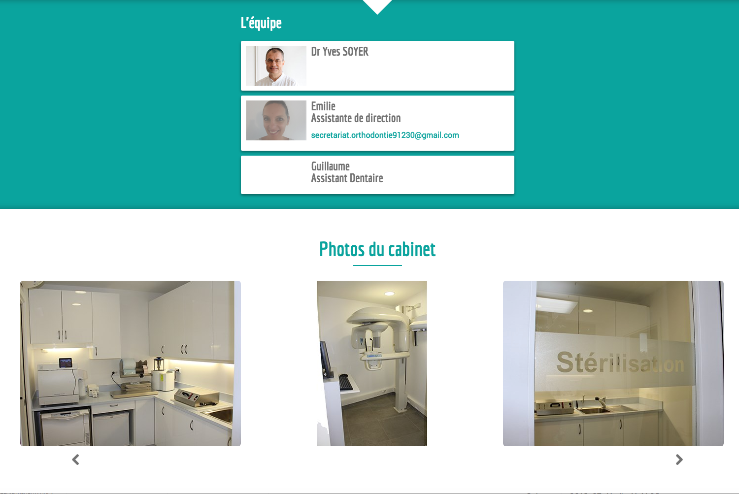Les portraits du docteur et ses assistantes confèrent une plus grande confiance aux clients potentiels qui arrivent sur la page du cabinet du chirurgien dentiste.